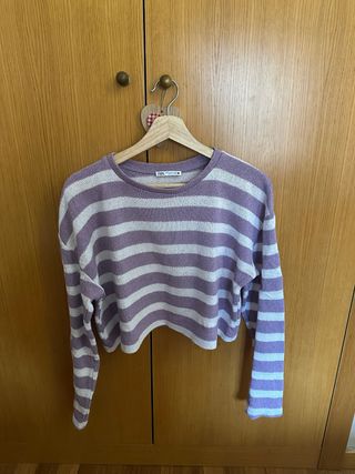 Jersey corto Zara rayas lila y blanco