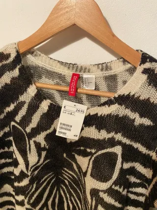 Jersey estampado de cebra H&M Talla S en color blanco y negro Material: 100% acrílico