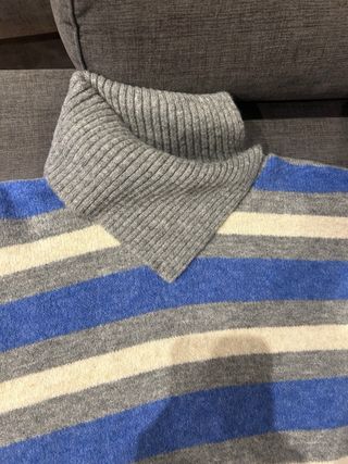 Jersey de punto con diseño de rayas horizontales y cuello alto. - Diseño de rayas en azul, gris y blanco. España toda gris - Cuello alto acanalado. - Mangas largas.