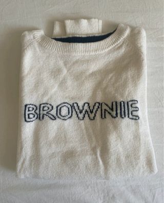 Jersey de punto con la palabra Brownie bordada en el pecho. Un diseño original y divertido. - Cuello redondo. - Manga larga. - Tejido suave. #cayetana #modajoven
