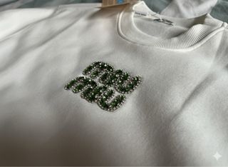 Jersey de Miu Miu de mujer talla XL. comprado en EE.UU. pero queda pequeño a mi hija. - Detalle de logo con pedrería. - Cuello redondo. - Manga larga. -Muy calentito por dentro.