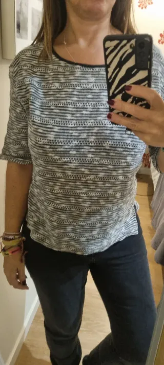 Jersey negro y blanco doble bajo. De Emestudios. Como nuevo. Talla XS. "Entrega en mano en Atocha, Alcalá de Henares, Vicalvaro y líneas de tren Atocha-Alcalá. Tambien envio"
