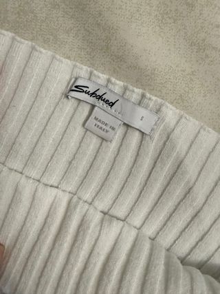 Jersey palabra de honor en color blanco. Talla S pero es muy ajustable al cuerpo por lo que sirve también para XS que es mi talla. Marca Subdued.