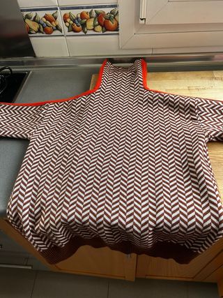Jersey de punto con un diseño de rayas rojas y blancas. Es un jersey suave y con un acabado mullido. - Diseño de rayas horizontales. - Cuello redondo. - Manga larga. Precio 3.50 euros no negociables ◾ No acepto ofertas ◾ Solo venta por envios ◾ Envio en menos de 24 horas después de su compra.