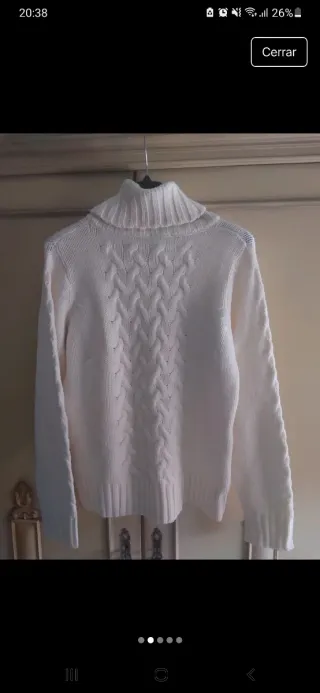 Jersey de punto trenzado en color blanco. - Diseño clásico con el logo de la marca bordado. - Cuello redondo y manga larga. Viene mal etiquetada, es una S.