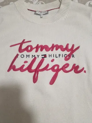 Jersey blanco de Tommy Hilfiger con logo. - Manga larga. - Cuello redondo. - Puños y bajo acanalados.