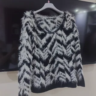 Jersey con un llamativo diseño de zigzag en relieve y acabado peludo. - Diseño de zigzag. - Textura suave y esponjosa. - Cuello en V.