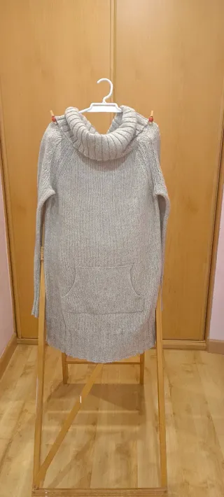 Jersey de punto gris de Zara con cuello alto. Presenta un diseño moderno con lazadas en los puños. - Medidas: largo 73cm, ancho de pecho 45cm y ancho de espalda 92cm. Modelo oversize. - Composición: 69% acrílico, 29% poliéster y 2% elastano.
