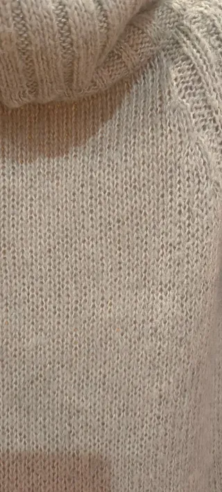 Preciosa y suave jersey de cuello alto de la marca Neus. Es de color beige y luce impecable. - Talla: (Añadir talla) - Tejido: suave y agradable al tacto - Cuello: alto, de canalé - Puños y bajo: de canalé