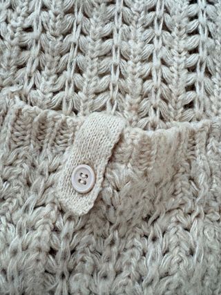 Jersey de punto de color crudo sin estrenar. No tiene ningún desperfecto. Cuello alto sutilmente deshilachado y enrollado con corte holgado. Corte oversize. Manga larga. Bajo jersey y puños cuentan también con el acabado enrollado. Punto trenzado. Medidas: - Largo: 68,5 cm - Largo manga: 51,5 cm - Axila a axila: 57,5 cm - Ancho manga: 17,5 cm Talla S (36) mujer, Zara. Envíos rápidos. Descuento por lote activo. Para más información contacten conmigo por privado ℹ️