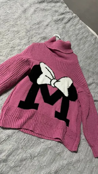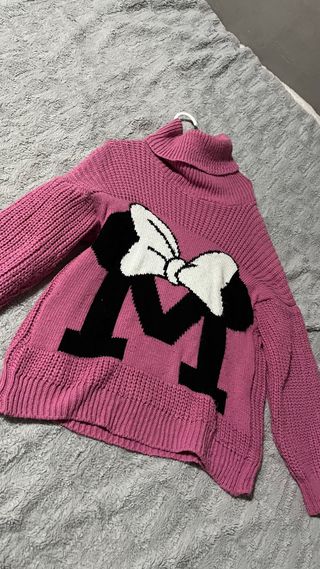 Jersey de lana con un divertido diseño de Minnie Mouse. - Cuello alto. - Detalle de lazo blanco y M en negro. - Tejido de punto grueso.