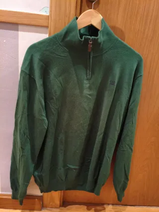 Jersey de manga larga con cuello alto y detalle de cremallera. - Color verde intenso. - Logo discreto en el pecho. - Tejido suave y cómodo.