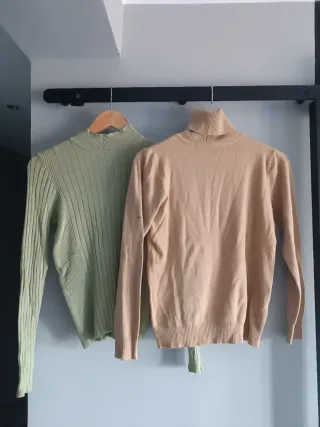 Pack de dos jerseys de cuello alto. Talla L - Jersey de canalé en color verde. - Jersey liso en color beige.
