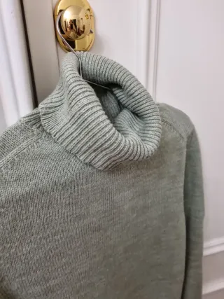 Jersey de punto fino en color verde salvia, con cuello alto. - Diseño de punto. - Cuello alto acanalado. - Manga larga.