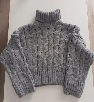 Jersey de punto grueso con cuello alto. Pone que es una talla S, pero por sus medidas yo diría que es más bien una L de mujer. 📏 49cm de hombro a hombro y 66cm de largo. 📷 Pedir más fotos si es necesario. 📦 Envíos rápidos en menos de 24 horas laborables. 💲Escucho ofertas.