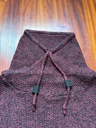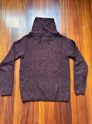 Suéter de punto para hombre, de color granate oscuro. Es de cuello alto y cierre de cremallera corta. Está en buen estado. - Tejido de punto suave. - Cierre con cremallera. - Talla: (Añadir talla)
