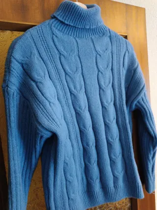 Jersey de punto con cuello alto. Color azul eléctrico - Diseño de canalé. - Mangas largas raglán. - Tacto agradable Comprado en El Corte Inglés, marca Easy Wear, talla L. Como nuevo, utilizado una vez.