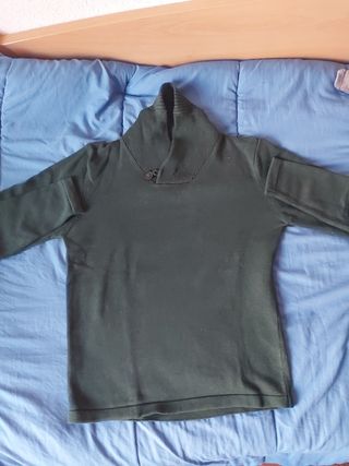Jersey de punto grueso 100% algodón. Cuello alto con botones. Muy buen estado, poco uso. Más cositas en mi perfil... Hago lotes y envíos.