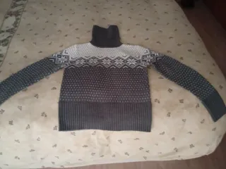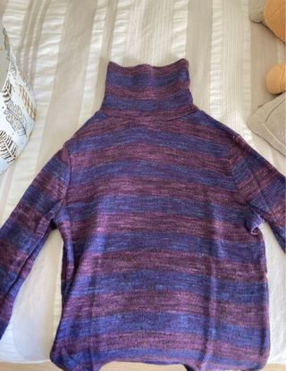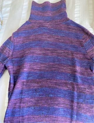 Jersey de cuello alto con un diseño de rayas multicolor. Medidas : Pecho 46*2 (92cm) Alto 58cm Hombros 38cm No se admiten devoluciones cualquier duda preguntad