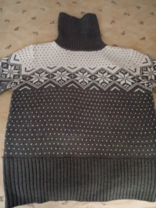 Jersey de cuello alto con un bonito diseño invernal. Perfecto para la temporada. - Diseño de copos de nieve y grecas. - Degradado de gris a blanco. - Puños y bajo de canalé.