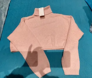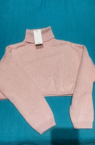 Jersey de punto rosa de cuello alto Color rosa. Talla XS Nuevo - Diseño cropped. - Manga larga. - Tejido suave.