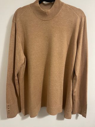 Jersey de punto suave en color beige, con cuello alto y detalle en los puños. - Tejido agradable al tacto. - Diseño elegante y versátil. - En perfectas condiciones.