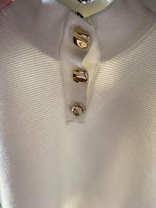 Jersey de punto fino con cuello alto y manga larga. - Diseño acanalado. - Puños con detalle de botones negros. - Cuello alto
