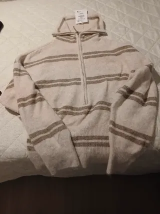 Jersey de Pull&Bear con un diseño de rayas. - Cuello alto con cremallera. - Manga larga. - Puños y bajo de canalé.