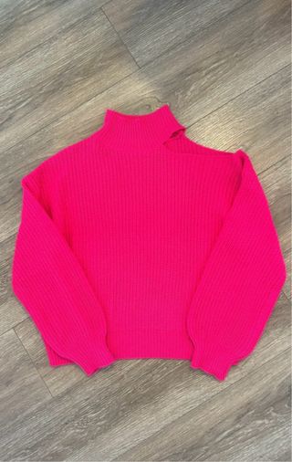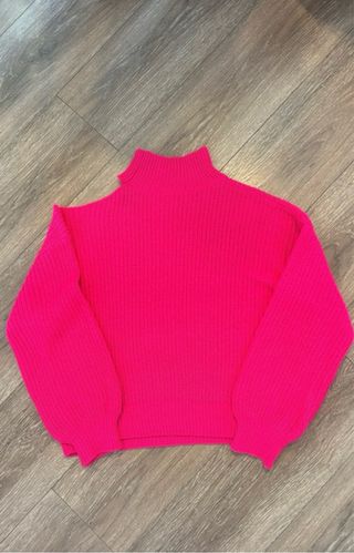 Jersey de punto rosa fluorescente - Cuello alto. - Corte asimétrico en un hombro. - Manga larga. - Tejido de punto grueso
