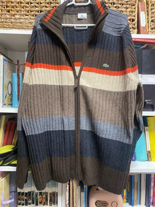 Jersey de punto con cremallera y cuello alto de Lacoste talla 9 - Diseño de rayas horizontales en varios tonos. - Pequeño logo del cocodrilo bordado en el pecho. -Original, comprado en El Corte Inglés