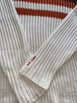 TALLA XS-S Jersey finito de rayas en tonos azul marino y beige, con cuello alto. -Logotipo RB relieve plateado en el pecho . - Diseño de rayas horizontales - Tejido ligero y suave. - Cuello alto. Queda ajustadito muy mono puesto. Se entrega limpio y listo para usar DALE VIDA 🌎... Más sudaderas jerseys pantalones vaqueros deportivas bolsos libros botes cristal útiles cocina hogar ropita bonita y cositas de marca interesantes en mi perfil de todo tipo BARATISIMAS...