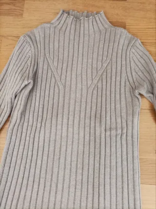 TALLA M -XS-S pese a que pone L Jersey de punto fino con cuello alto sin doblar . Ideal para un look elegante y abrigado sin agobiar. - Tejido acanalado. -Manga tres cuartos larga... -Componentes lana 60% y resto poliéster. Se entrega limpio y listo para usar. DALE VIDA 🌎... Más jerseys, abrigos, bolsos, peluches,zapatillas converse, material colegio, ropita bonita de cama, colchas Indias nuevas, libros, botes cristal BARATOS y cositas interesantes en mi perfil de todo tipo BARATISIMAS...