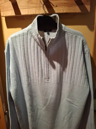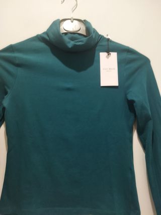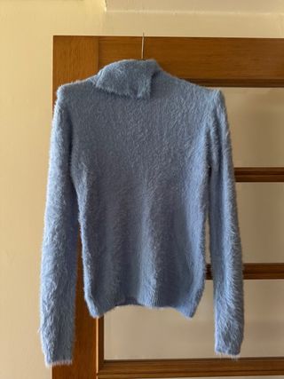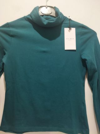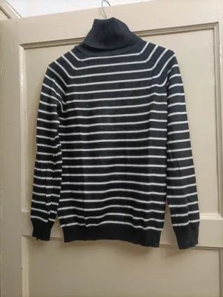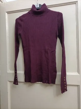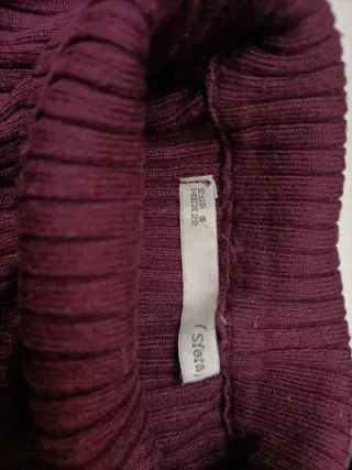 Jersey de punto con cuello alto. a aunque la etiqueta marque talla XS, en realidad es S-M - Tejido suave y cálido. - Diseño clásico y versátil. Tiene una pequeña imperfección casi imperceptible en la parte de atrás a la derecha, de ahí su precio