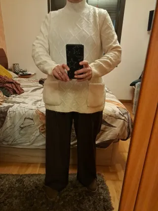 Jersey de punto grueso con cuello alto. - Tejido suave y confortable. Interior de forro polar. - Diseño moderno y versátil. Talla grande, vale para talla M.