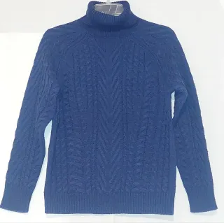 Jersey de punto con diseño de ochos y espiga y cuello alto. - Talla 42 de Fórmula Joven. - Tejido de lana. - Color azul marino. - Cuello alto. - Diseño de ochos en toda la prenda. En perfecto estado.
