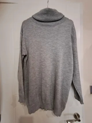 Jersey gris con cuello alto, un poco más largo por detrás que por delante