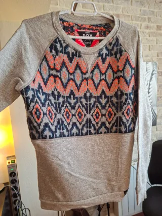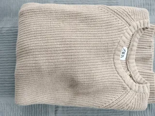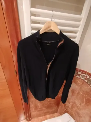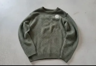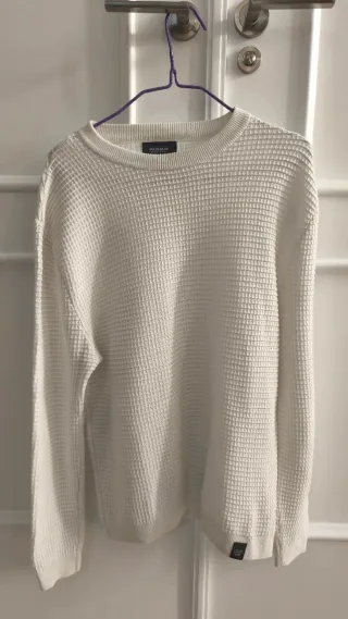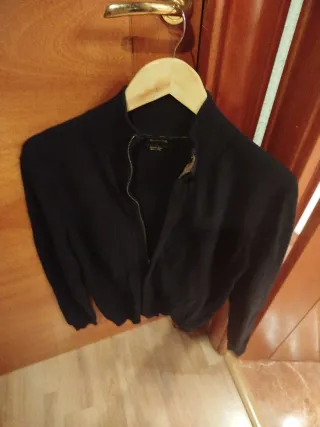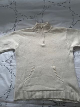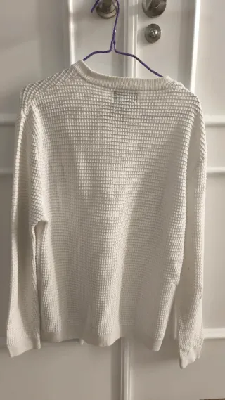 Jersey de punto grueso de algodón 100%. Abrigado. Cuello redondo, cerrado. Puño en manga y cadera ancho. Queda ajustado al cuerpo. No es oversize. Muy poco uso, el tejido está en excelentes condiciones.