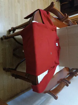 Lote de dos jerseys en color rojo y talla L. Sudadera roja Polo Ralph Lauren Jersey pico rojo algodón zara Chaqueta con doble cremallera negra y forrada Meyba - Detalle de pico en el cuello. - Pequeño logo bordado en el pecho.