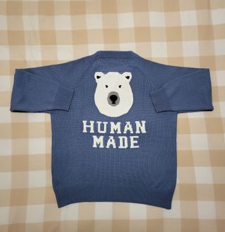 Jersey de punto de la marca Human Made Color: Azul Talla L Medidas: 72cm de largo 63cm de ancho Características: - Cintura, cuello y puños de canalé. - Mangas raglán. - 58% algodón, 29% nailon 13% lana Se encuentra en perfecto estado No se ha usado, no tiene manchas ni desperfectos Entrega en mano y también realizo envíos