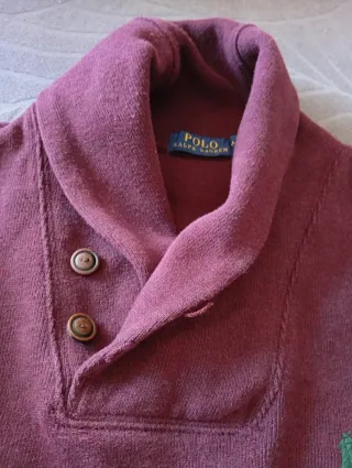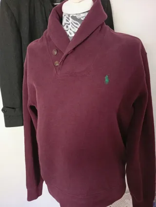 Jersey de cuello chimenea con botones Ralph Lauren en muy buen estado con poco uso.Talla M.De sisa a sisa mide 55 cm y el largo 69 cm.Color granate de algodon.