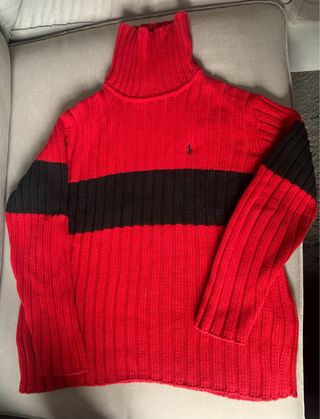 Jersey 100% algodón de Ralph Lauren con cuello alto. - Diseño de rayas horizontales en rojo y negro. - Cuello alto acanalado. - Pequeño logo de la marca bordado en el pecho.