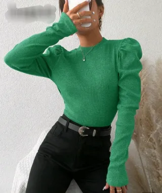 Jersey de punto acanalado con manga abullonada tipo Gigot. - 85% algodón