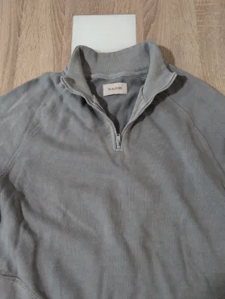 Jersey de algodón con cuello alto y media cremallera. - Diseño de canalé en puños y bajo. - Bolsillos laterales. - Detalle de logo en la parte inferior. Esta sin apenas uso.