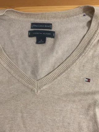 Suéter Tommy Hilfiger Denim, talla L, 100% algodón, de punto grueso y en color crema. Original y en buen estado (sin manchas ni desgaste).