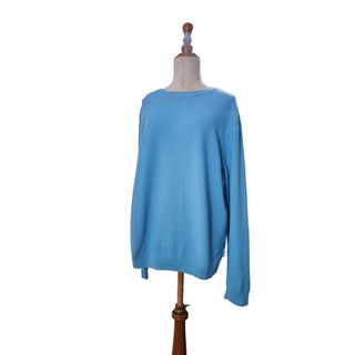Armedangels/ Jersey 100% algodón azul celeste talla L. Escote redondo, mangas largas, punto tramado. Ancho de hombros: 47 cm. Ancho de pecho: 57 cm. Largo: 73 cm. Largo de mangas: 75 cm. En muy buen estado.