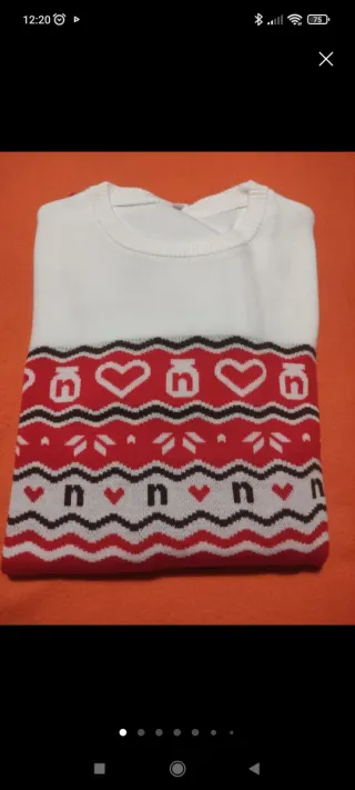 -Jersey de punto con diseño navideño de la marca Nutella. - Diseño con corazones y motivos navideños. - Tejido suave y cómodo. - 1 jerseis talla M. - 2 jerseis talla L. - 85 % acrílico. - 15 % algodón. -1 jersei 10 €. - 2 jerseis 18 €. - Nuevos a estrenar