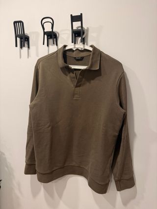 Jersey de punto de Massimo Dutti, de cuello pico tipo polo. Tejido 100% algodón. Color verde oliva. Acabados en rib.