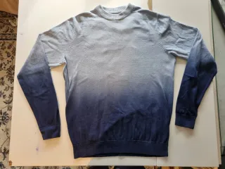Jersey de hombre de la marca británica Next. Punto fino, 100% algodón, con un elegante degradado azul. Apenas usado. Medidas: 1/2 pecho= 53cm