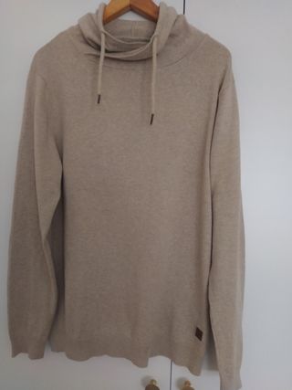 Jersey de cuello alto con un diseño de rayas clásico.Pone talla L , pero da poca talla,más bien como M - Diseño a rayas en azul y beige. - Cuello alto para mayor calidez. - Tejido suave y cómodo ( algodón)