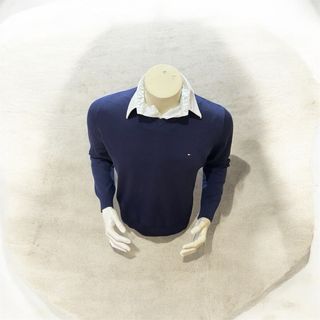 Jersey de punto fino con cuello en V y el logo bordado de Tommy Hilfiger. - Color azul marino. - Cuello en V. - Logo bordado en el pecho. Talla: M// Color: Azul Marino // 100% Algodón // Como nuevo // Logo bordado // Original (foto de etiquetas) // Puños acanalados // Jersey de algodón premium Tommy Hilfiger Azul Marino // Jersey Knit Tommy Hilfiger Navy Blue // Old Money // Y2K // Envío instantáneo // Fast Shipping // Premium Cotton